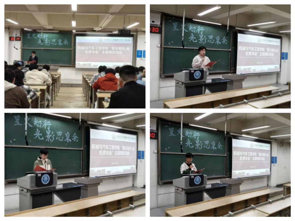 机械243张海航在《传承五四精神·激扬青春力量》发言中,结合习近平总书记对青年的寄语,号召同学们继承“爱国、进步、民主、科学”的五四精神内核,在新时代勇担复兴重任。机械246杨思远在《以青春之我·创青春中国》的分享中提出:“当代青年要像百年前的五四先驱那样,既怀揣‘以天下为己任’的胸襟,又锤炼‘绝知此事要躬行’的实干精神”。测控241王麟则以《让五四精神绽放时代光芒》为题,结合公司学科特色,倡议同学们将个人成长熔铸于国家发展,用机车人的工匠精神书写新时代青春答卷。活动结束后,参会同学不仅提交了深刻的学习感悟,更形成了《青春建功行动清单》。同学们纷纷表示,通过光影艺术深切感受到跨越百年的青春共鸣,更加坚定了“强国有我”的使命担当。