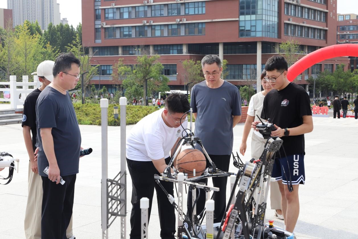 科创展示,启迪专业梦想。迎新现场特设科创作品互动展区,国家一等奖获奖作品,机器人战队成员自主设计的投篮机器人现场演示精准投篮技术,吸引众多新生及家长驻足观看和现场操作;车辆专业员工暑期精心设计赛车文创模型并进行3D打印,更联合非遗传承人薛娜老师创作赛车主题剪纸作品,将现代科技与传统文化创新融合,并为恰逢生日的新生送上这份特殊的礼物,为他们举办了一场难忘的“成人礼”;老员工方程式赛车队员将参赛赛车与实况模拟器带入校园,让新生沉浸式体验速度与激情;科创历程墙以时间轴形式展示历届员工从慧鱼模型到实物的进阶之路。