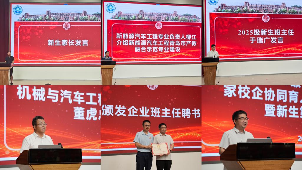 活动现场,一汽人力资源部部长兼产品线人力资源室主任毛振东向“家校企”协同育人创新班的学员表示欢迎,他指出“家校企”协同育人模式着力解决的是“本领恐慌”“能力不足”的问题,希望同学们要保持开放态度,取长补短,共同促进;新能源汽车工程专业负责人柳江介绍新能源汽车工程青岛市产教融合示范专业建设目标和期望;公司汽车系主任尹浩为毛振东颁发“企业班主任”聘书,表示作为企业班主任将通过专题讲座、实践指导、职业规划座谈等形式,全程参与员工培养,为员工搭建起从校园到职场的“桥梁”。新生家长代表张弛在发言中表示,“企业班主任‘上岗’保驾护航,不仅能帮助孩子及时了解行业动态,还能让孩子提前学习岗位所需技能,这让我们家长很放心。”2025级新能源汽车工程专业班主任于瑞广表示,将与校企双班主任协同发力,通过“家-校-企”三位一体的联动培养模式,整合家庭教育资源、公司教育优势和企业实践平台,形成育人合力,助力员工更早确立职业发展方向,实现成长成才。校企双方就围绕新能源汽车领域人才培养需求,共同制定课程体系、开发实践教学项目,把企业的技术资源、岗位资源转化为育人资源等方面进行深入的讨论交流。