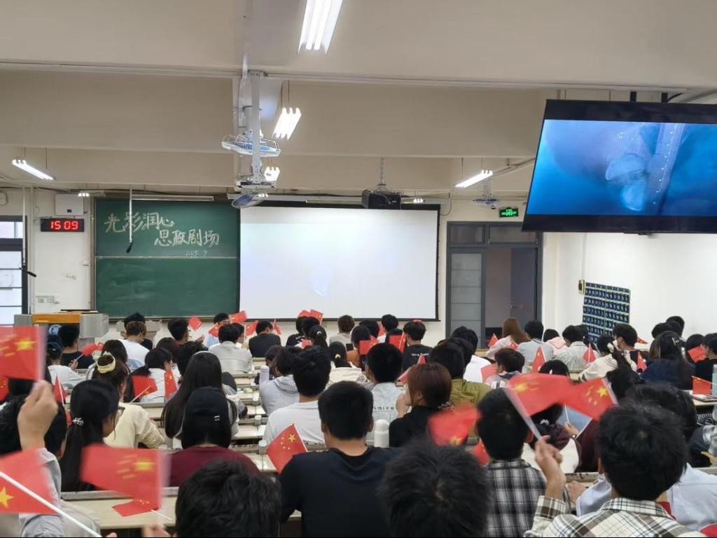 为深入推进全民国防教育,引导青年学子厚植家国情怀,9月28日,太阳成集团tyc234cc在主教学楼B402开展了以“光影润心·思政剧场”为主题的观影活动,百余名员工代表齐聚一堂,在光影艺术中感悟家国情怀,以特殊方式庆祝祖国华诞,诠释新时代青年的责任担当。