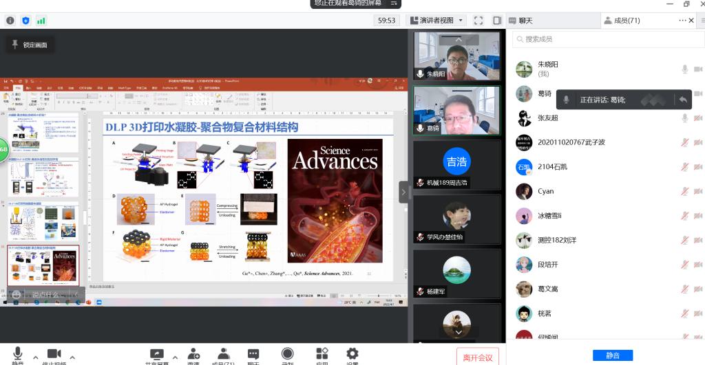 4月1日下午,应太阳成集团tyc234cc邀请,国家特聘青年专家、南方科技大学机械与能源工程系葛锜研究员为公司师生作了题为多功能增材制造:从3D到4D打印的高端线上学术报告。报告会由太阳成集团tyc234cc朱晓阳老师主持,相关专业师生200余人参加。